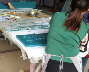 貼字制作完畢后,就是貼字工序,要用量好貼字位置,接著粘上膠水把貼字部分貼上去。
