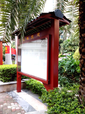 跟每個行業一樣,力求創新,追求完美,也是標識行業的特點。現在的標識牌很多都固定材料及工藝,不能與自然環境達到和諧統一,為此,很多設計和技術人員不斷研究創新,將金屬標識牌與仿古結合。仿古的宣傳欄由此而來。